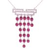 Nádherný, bohatý a působivý design náhrdelníku pro velké chvíle. Rafinovaná kombinace řetízku z bílého zlata a rubínového závěsu z dvaceti kamenů zavěšených na zirkonové hrazdě vytváří dokonalý celek. Budete ozdobou společnosti.